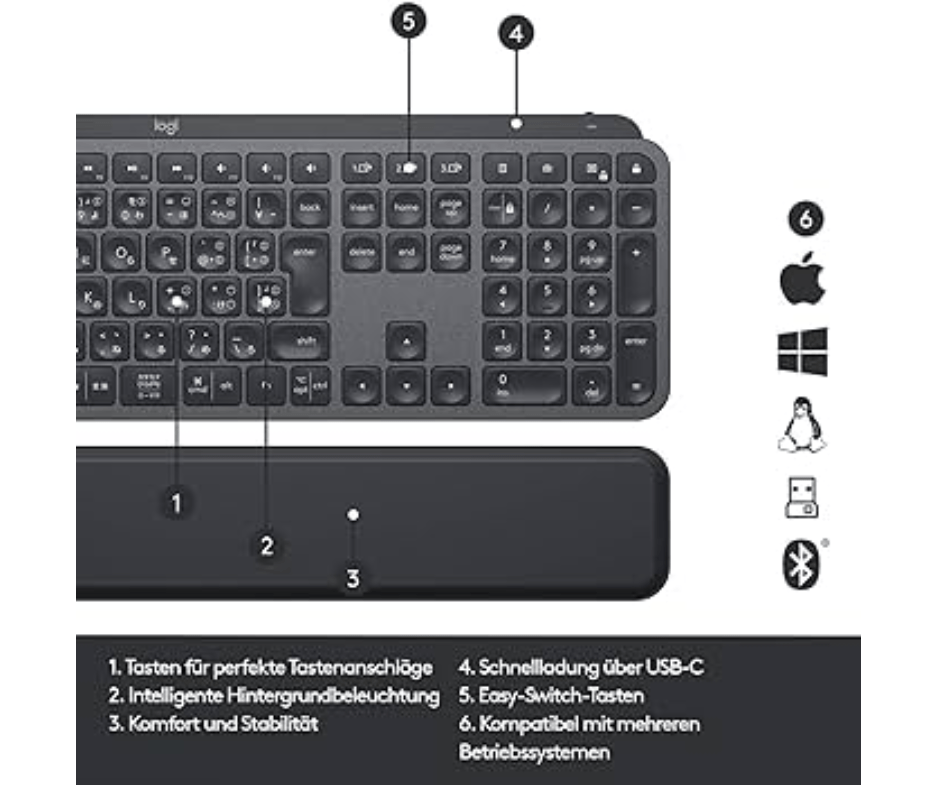 Logitech MX Keys Advanced Wireless Illuminated Keyboard – Graphite Bundle MX Palm Rest